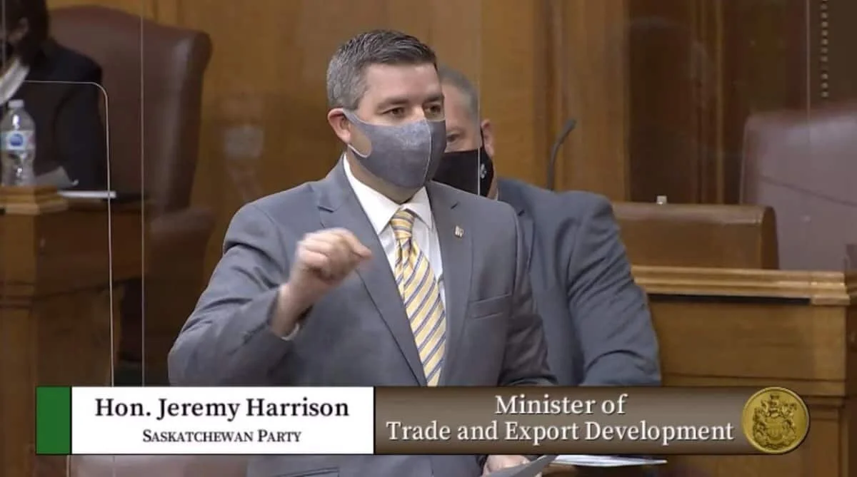 PHOTO: Trade and Export Development Minister Jeremy Harrison announced a new aid program for small businesses adapting to COVID-19. The program is retroactive to almost the beginning of the pandemic. Screen capture courtesy Legislative Assembly of Saskatchewan.