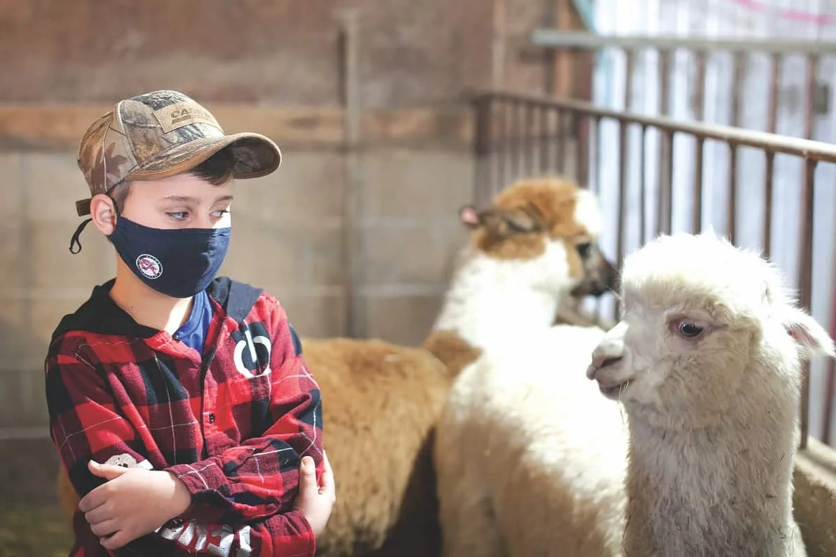 Wayne Bernard looks a bit unsure of his new found friend, Louise the alpaca. The Bernard family from Eston enjoyed an adventure to Cobler’s Cove at Gull Lake.