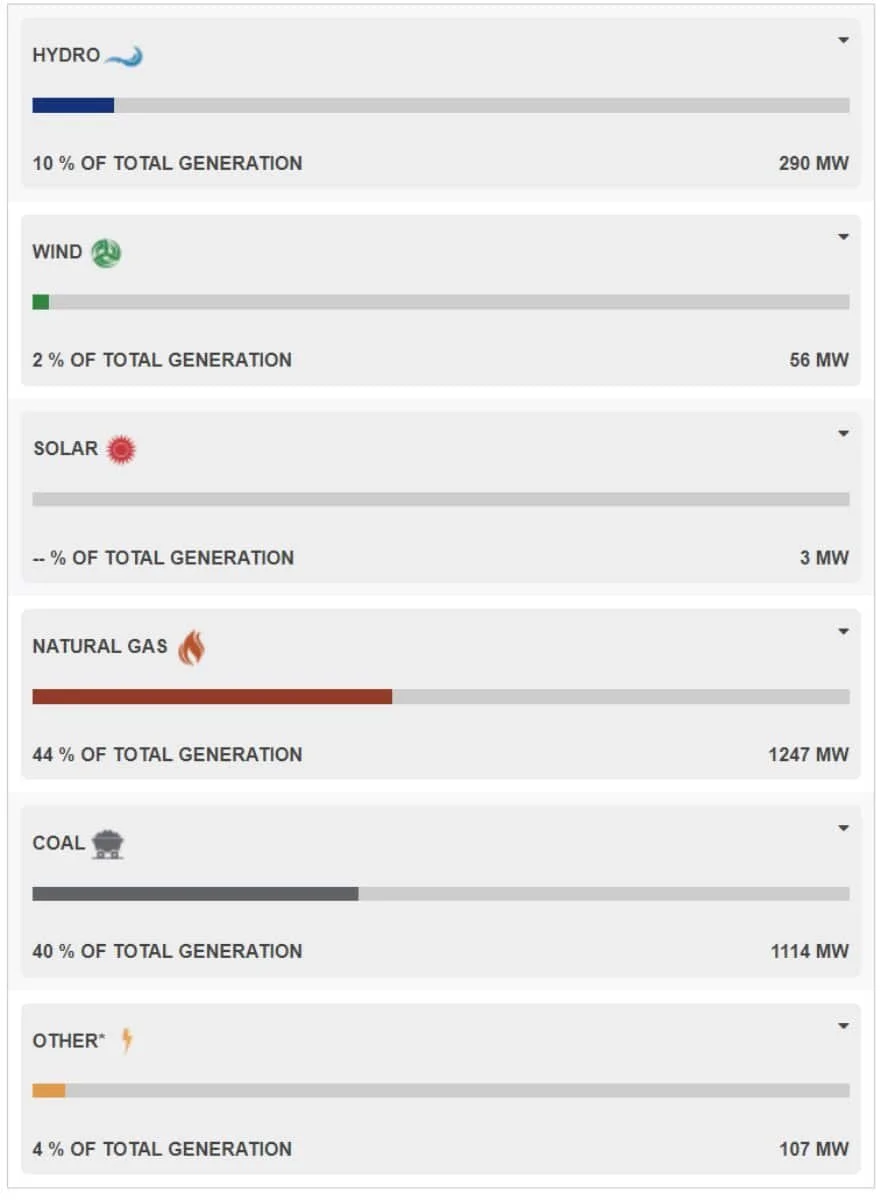 SaskPower doesn’t put out nearly as detailed data, and it delays its data by two days, publishing it on its “Where Your Power Comes From” web page. Its numbers are daily averages for entire classes of power generation, as opposed to minute-by-minute information like the AESO publishes.