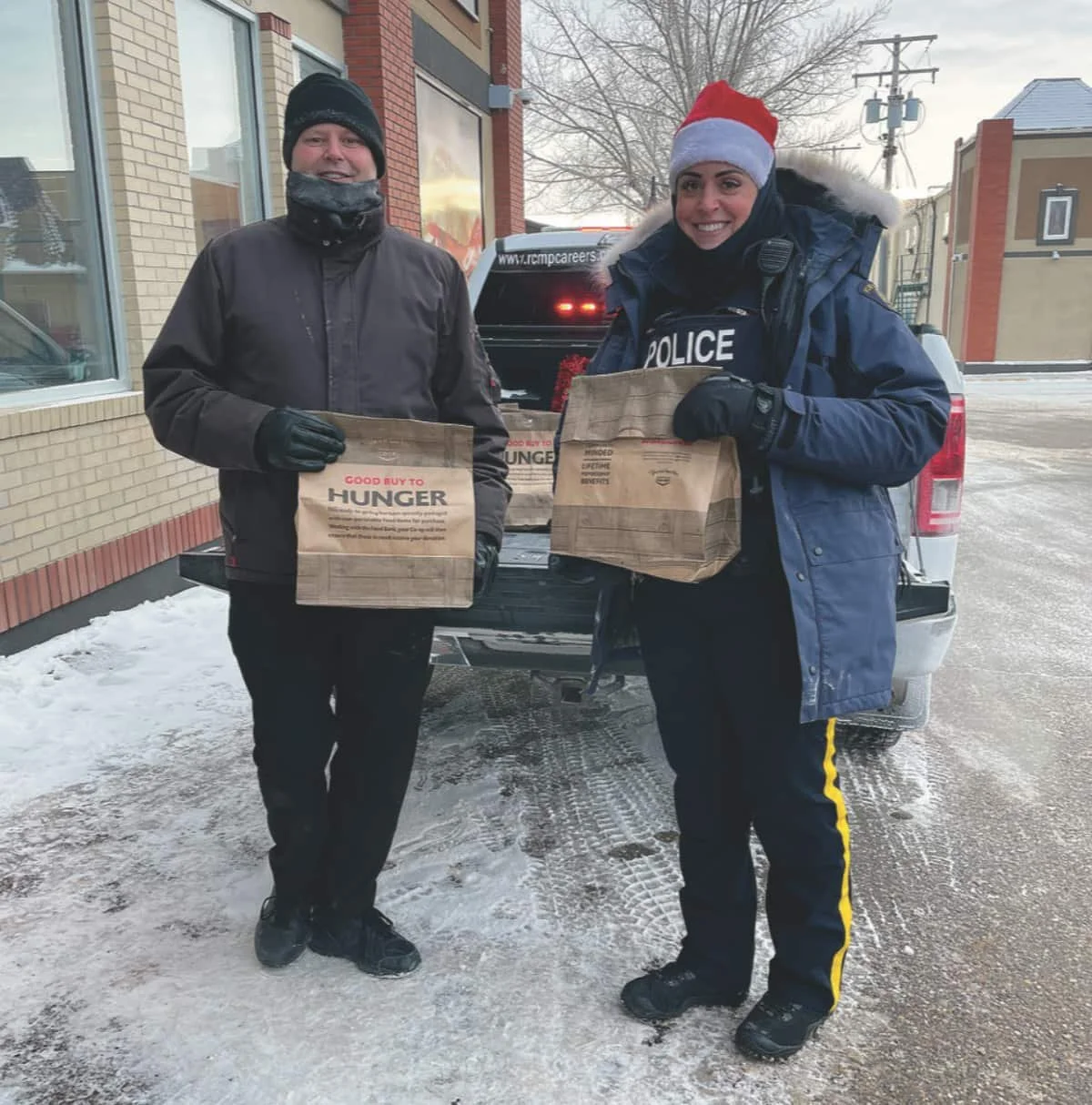 The Cram the Cruiser promotion in support of the Kindersley Food Bank took place in front of the Kindersley Co-op food store on Wednesday, December 7th. Despite the frigid temperatures, these constables were outside collecting “Co-op Good Buy to Hunger” bags from customers who exited the store. Over 480 bags were collected from Co-op customers!