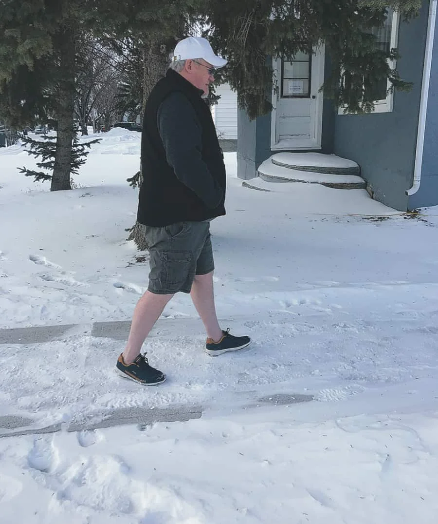 After the last few weeks of bitter cold, when the temperature rose to a balmy -4°C, it was time for Scott Matchett to put on his shorts and go for a walk!