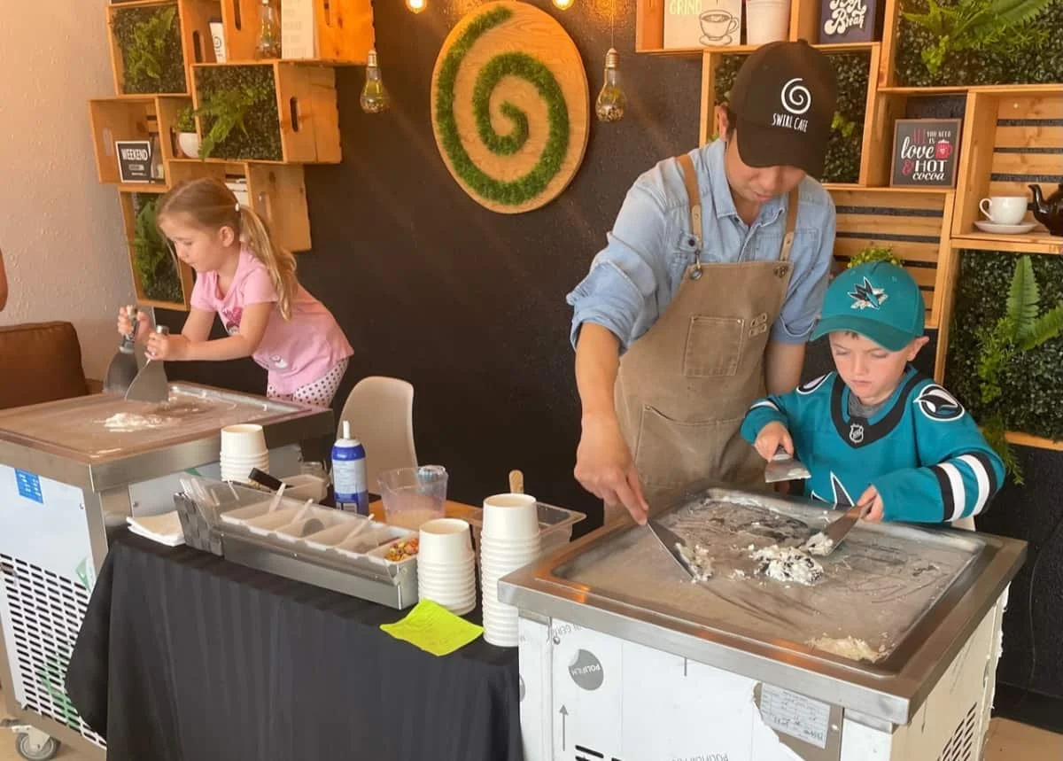 Co-owner and Operations Manager, Jeff Santos gave the kids a warm welcome, and had all the necessary equipment easily accessible, ready for the children to use. After a few short instructions on how to ‘chop, chop, chop’, the first two kids began making their own rolled ice cream.