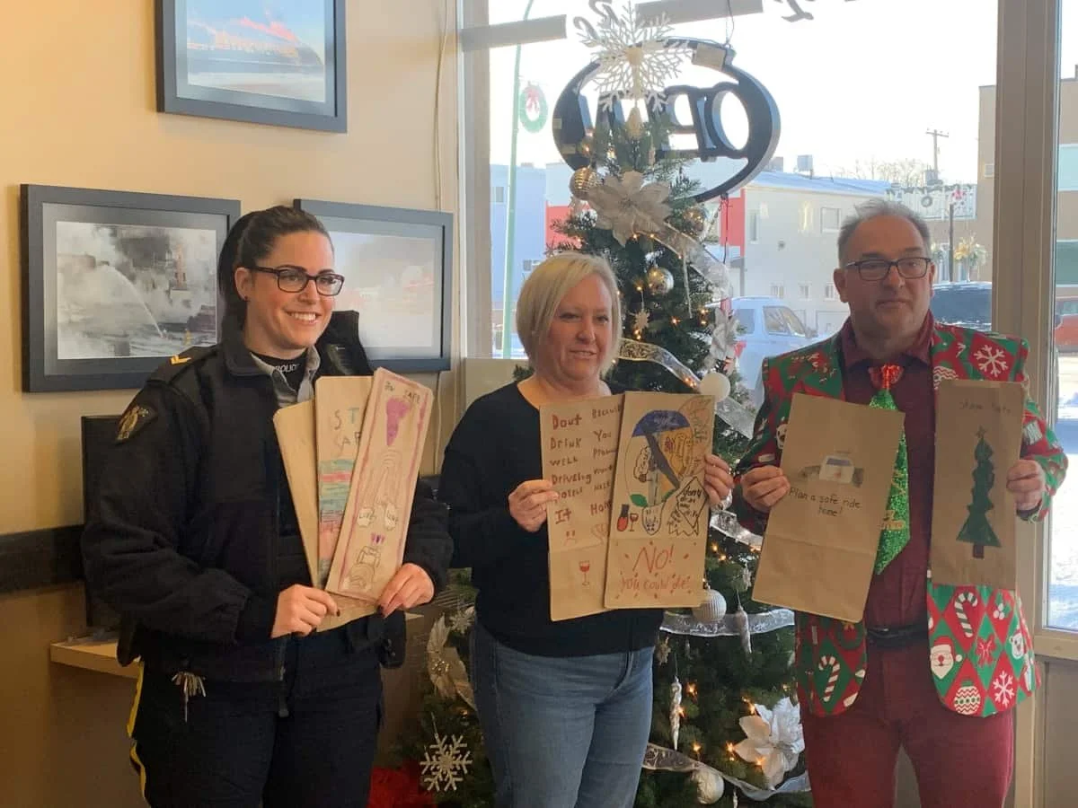 Kindersley RCMP have partnered with Westberry School and the Red Lion Inn for a special Holiday initiative. Students from Westberry School have decorated paper bags with Holiday pictures and anti drinking and driving messages which will be handed out to customers with their purchase over the next week or two. It is the hope of everyone involved that the student’s artwork and messages will make people rethink their choices when they are drinking alcohol.
