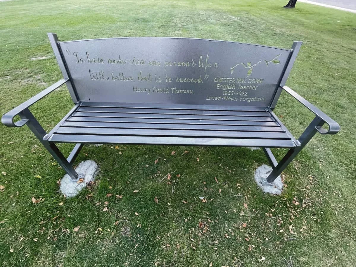 “To have made even one person’s life a little better, that is to succeed.” Henry David Thoreau. Chester M.W. Dobni - English Teacher, 1965-2022 - Loved - Never Forgotten. The bench is a reminder of all the lives he touched.