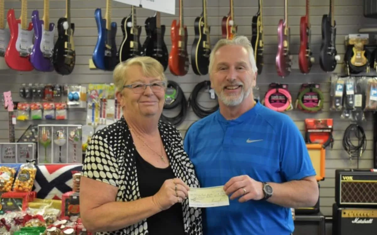 Photo #2 LR: Leslie Omness (Kindersley & District Food Bank) and Derek Semple (Oldtimers)