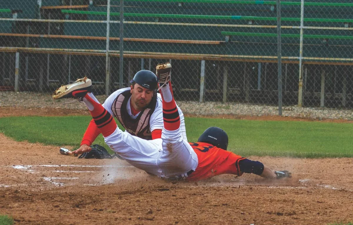 The Kindersley Stallions played host to the Provincial Tier II Baseball Championships over the weekend. Participating teams included the Cabri River Rats, North Battleford Beavers, Standard Hill Lakers, Wilkie Brewers and the hometown Stallions. The final was played on Sunday afternoon with the Standard Hill Lakers defeating Kindersley 3-1. Pictured above is Corson Harris of the Kindersley Stallions sliding safely into home plate, just beating the tag from the North Battleford Beaver catcher.