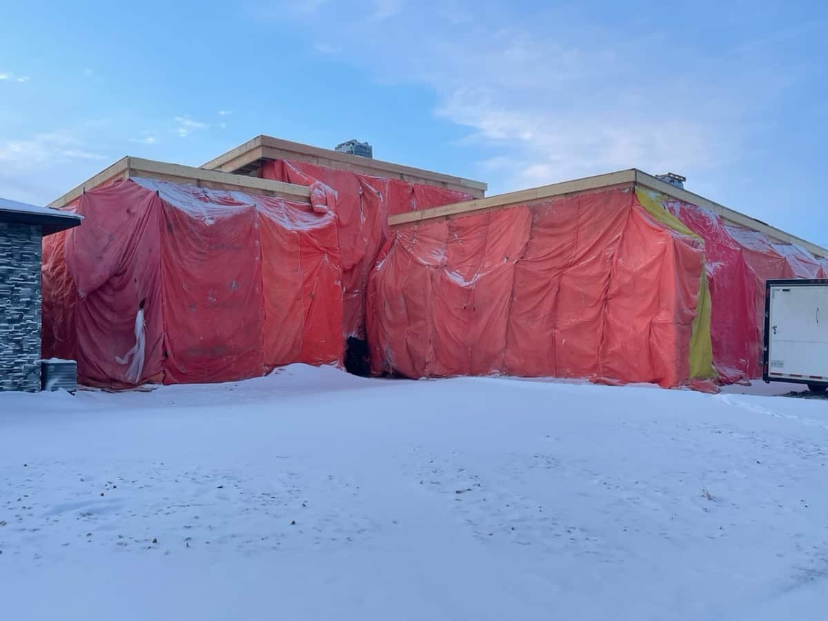You’ve heard of bed-in-a-bag and taco-in-a-bag … but here’s a house-in-a-bag! That’s how the exterior of a construction project gets finished during a Saskatchewan winter. It’s one of the new housing projects being completed on 6th Avenue East in Kindersley.