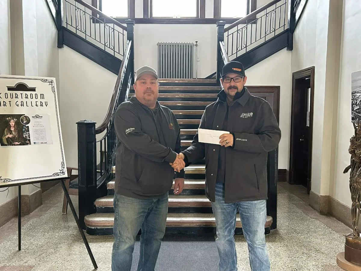 “Chuck-A-Puck” on Minor Hockey Day was able to raise $284.00 to the Kerrobert Kidsport Committee. L-R: Ryan Blanchette (Kidsport Board Member) and Jerry Shepherd, Kerrobert Minor Hockey President.