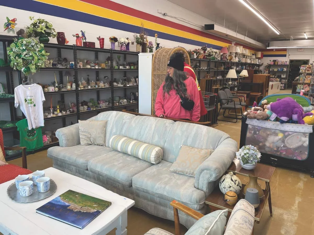 Customer Sarah Tetlock checks out the recent transformation that has taken place at Kindersley’s Salvation Army Thrift Store. Photo by Joan Janzen