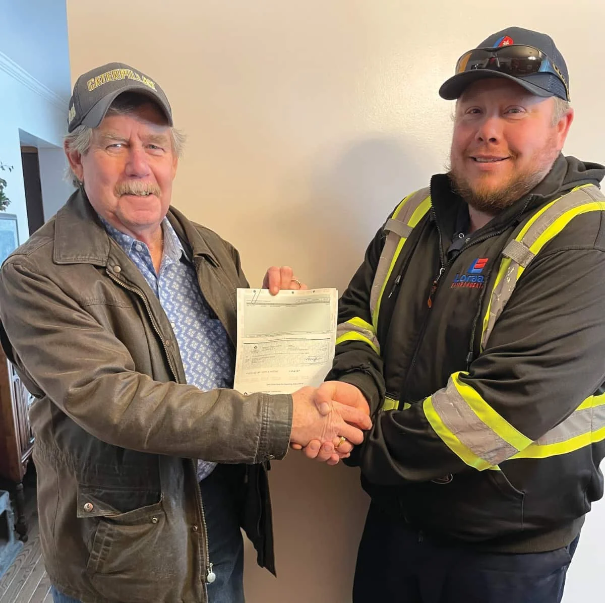 The Kindersley branch of Loraas Disposal recently presented a donation of $1,000 to Kindersley & District Health & Wellness Foundation. The local branch of Loraas has a positive impact within the community and the Wellness Foundation was very grateful for their gift. Pictured L-R: Rick MacDougall from Kindersley & District Health & Wellness Foundation, accepts the donation from Mike Mindle, Operations Supervisor of Loraas.