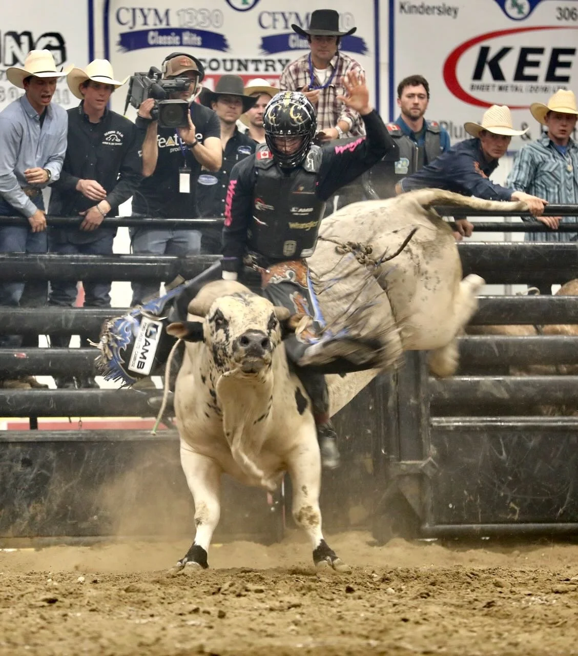 The event featured a special tribute to Dakota Buttar, showcasing his inspiring journey from growing up in Kindersley to becoming a two-time Canadian champion on a big-screen video. Host Brett Gardiner, a 13-time announcer of the year, added to the excitement, rallying the crowd with his dynamic commentary: "PBR friends, together with the champions of champions, celebrating the greatest bull riders on the face of the planet, all preparing to do battle 8 seconds at a time! Kindersley … welcome the bull riders of the PBR!"