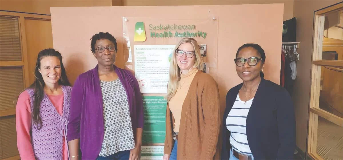 (Left to right) Ashlyn Higgs, Jane Chukwujekwu, Kari Sveinbjornson and Nicole Naughton, senior assessor coordinators, are part of the HealthLine 811 team providing 24/7 mental health and addictions support to residents across the province.