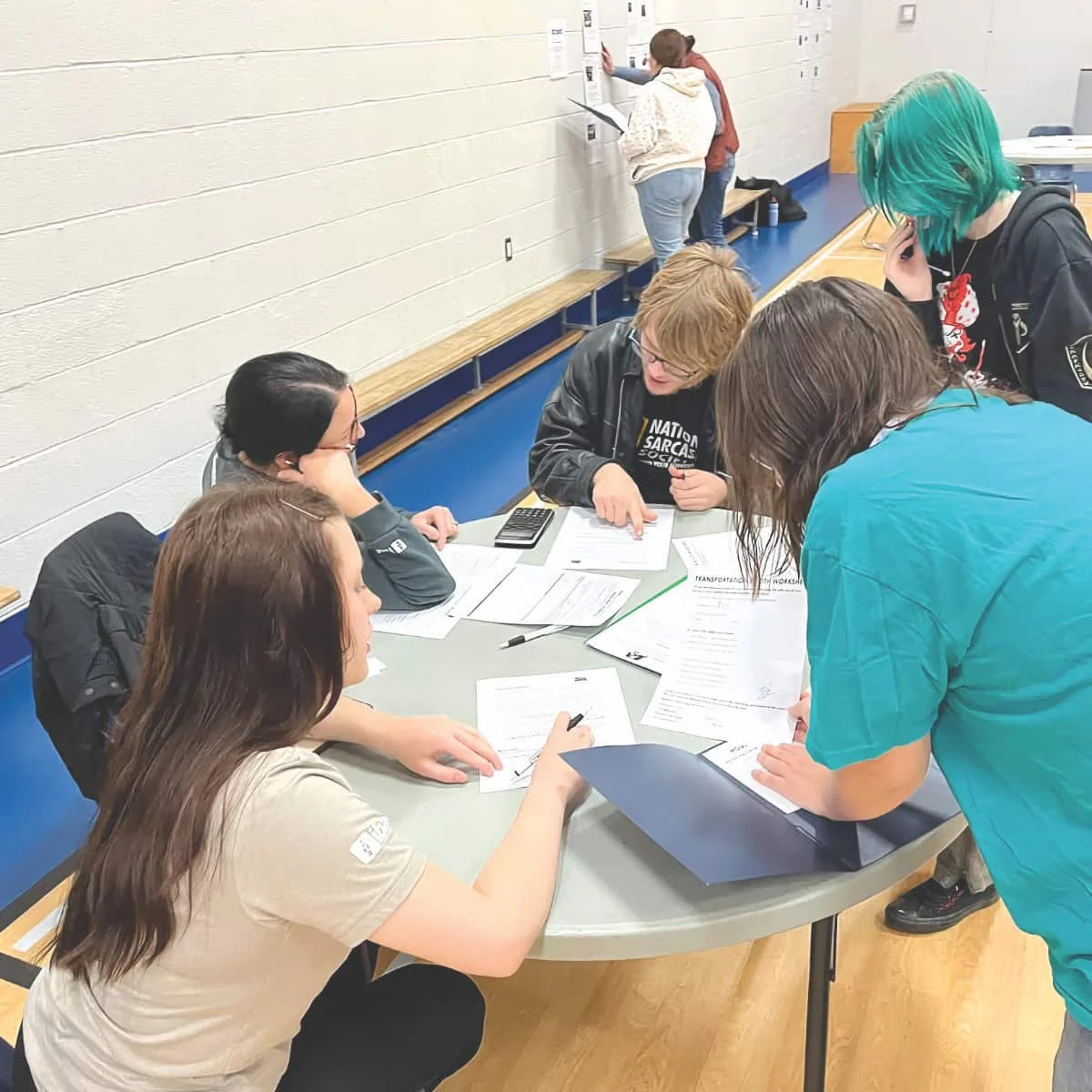 Students were assigned careers based on their interests and post-secondary plans, with salaries drawn from Saskatchewan averages and current job postings. They then moved through a series of booths representing real-world expenses — housing, transportation, insurance, groceries and utilities among them. Costs reflected current market rates, and deductions were calculated using Canada Revenue Agency tools.