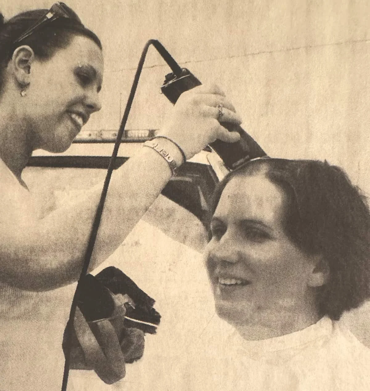 A snapshot of these two Kerrobert gals was published in a 2007 spring edition of The Crossroads. Grade 12 student Lacy Schrieber took great care in shaving teacher Allison Sherwin’s hair at the Cops for Cancer fundraising event that took place that year.