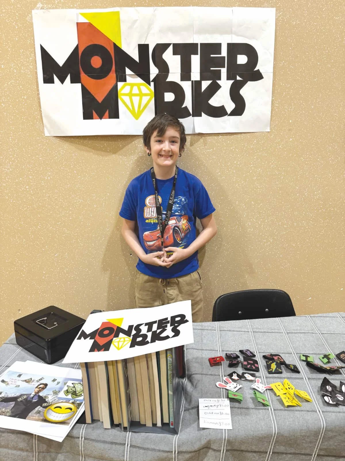 There were some authentic products at the market. Cadence had crafted Mindful Moments, tiny textured figures to help relieve anxiety. Aydin had an extensive display of fridge magnets, while another table featured Monster Marks — bookmarks fitted for the corner of a page.