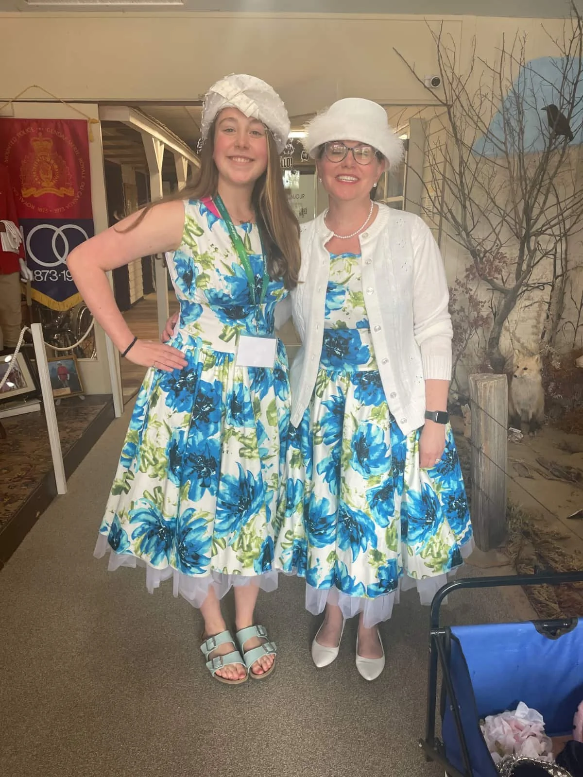 This mother-daughter duo wore matching dresses to the tea. PHOTO BY JOAN JANZEN