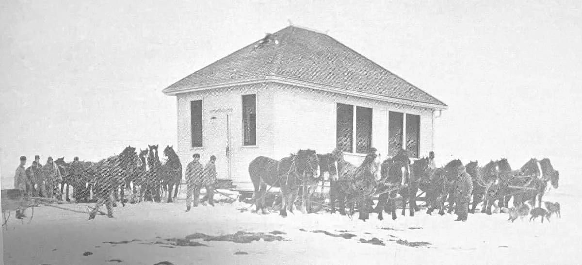 In 1928, Hoosier, Sask., was a busy community as people travelled from town to town on a passenger train. Schools were moved by means of horsepower and replaced with larger ones to accommodate more students. The smell of coal smoke mixed with steam and the sound of steam escaping from various vents were familiar sensations during that era. Harvest trains arrived carrying men to help bring in the crop. These men often stayed to build a new life for themselves. Records indicate that passenger service in the area was removed from the public timetable in 1963. The last load of railroad ties left Hoosier in 1982. Hoosier is a hamlet located 40 km northwest of Kindersley.