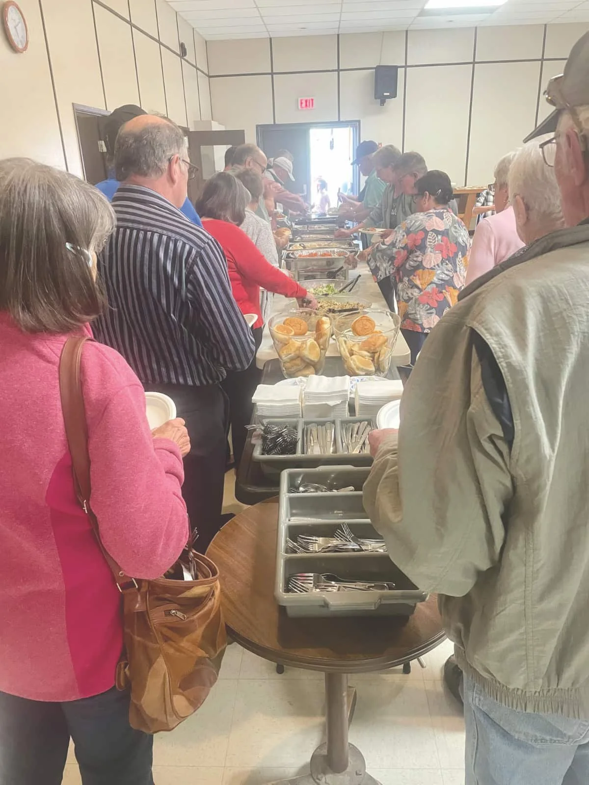 There was a minor wrench thrown into the Coleville cooks’ schedule when a two-hour power outage hit earlier in the afternoon. However, rural people are famous for their ingenuity, and volunteers quickly hauled generators and barbecues to the hall to get the job done. The doors opened just fifteen minutes after the scheduled time. The food was abundant and delicious, and the volunteers were adept at replenishing the serving trays.