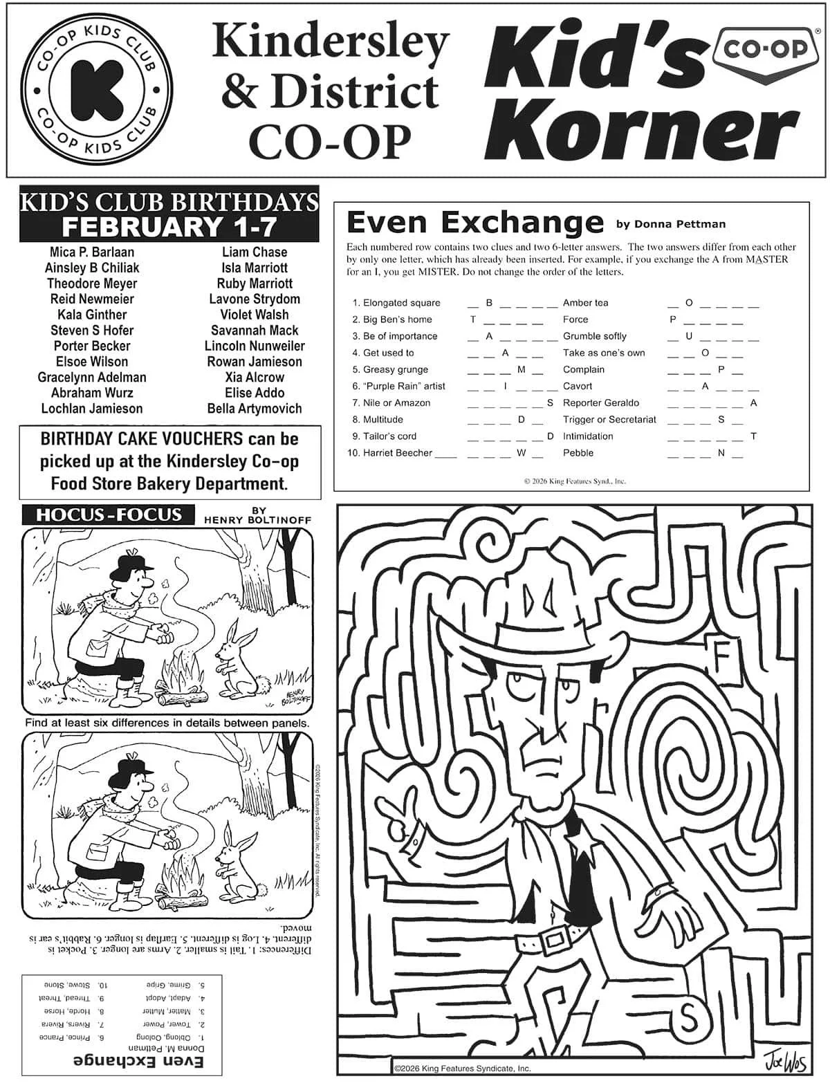 Co-op Kid's Korner, February 12 Fun & Games Feb 12 Written By Your West Central Voice Hey kids, enjoy some puzzles and games! The young at heart can enjoy these too! Your West Central Voice