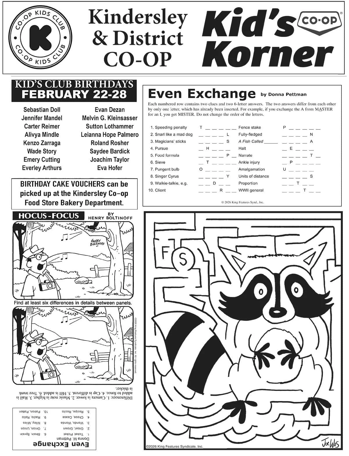 Co-op Kid's Korner, February 26 Fun & Games Feb 26 Written By Your West Central Voice Hey kids, enjoy some puzzles and games! The young at heart can enjoy these too! Your West Central Voice