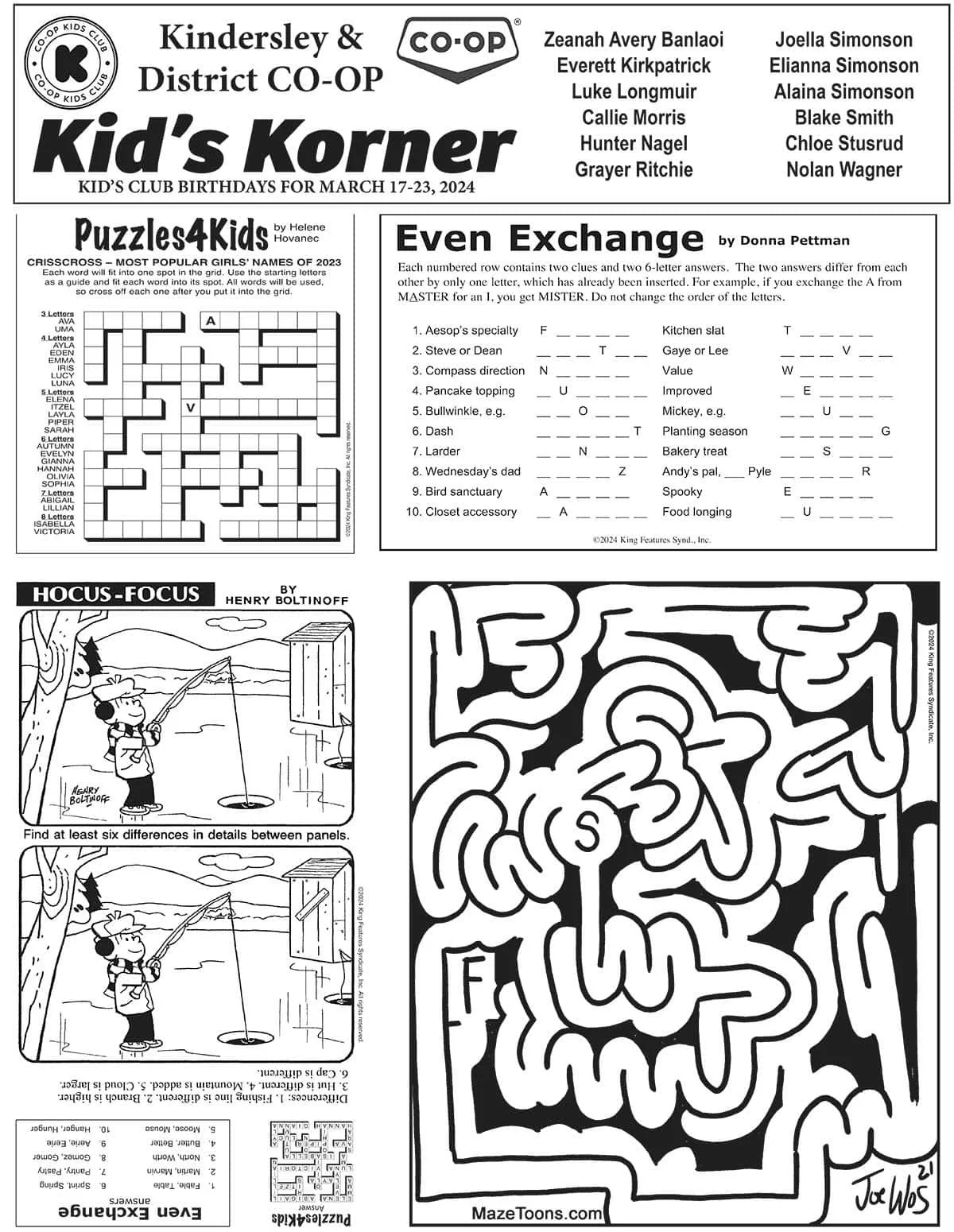 Co-op Kid's Korner, Mar 21 Fun & Games Mar 21 Written By Your West Central Voice Hey kids, enjoy some puzzles and games! The young at heart can enjoy these too! Your West Central Voice