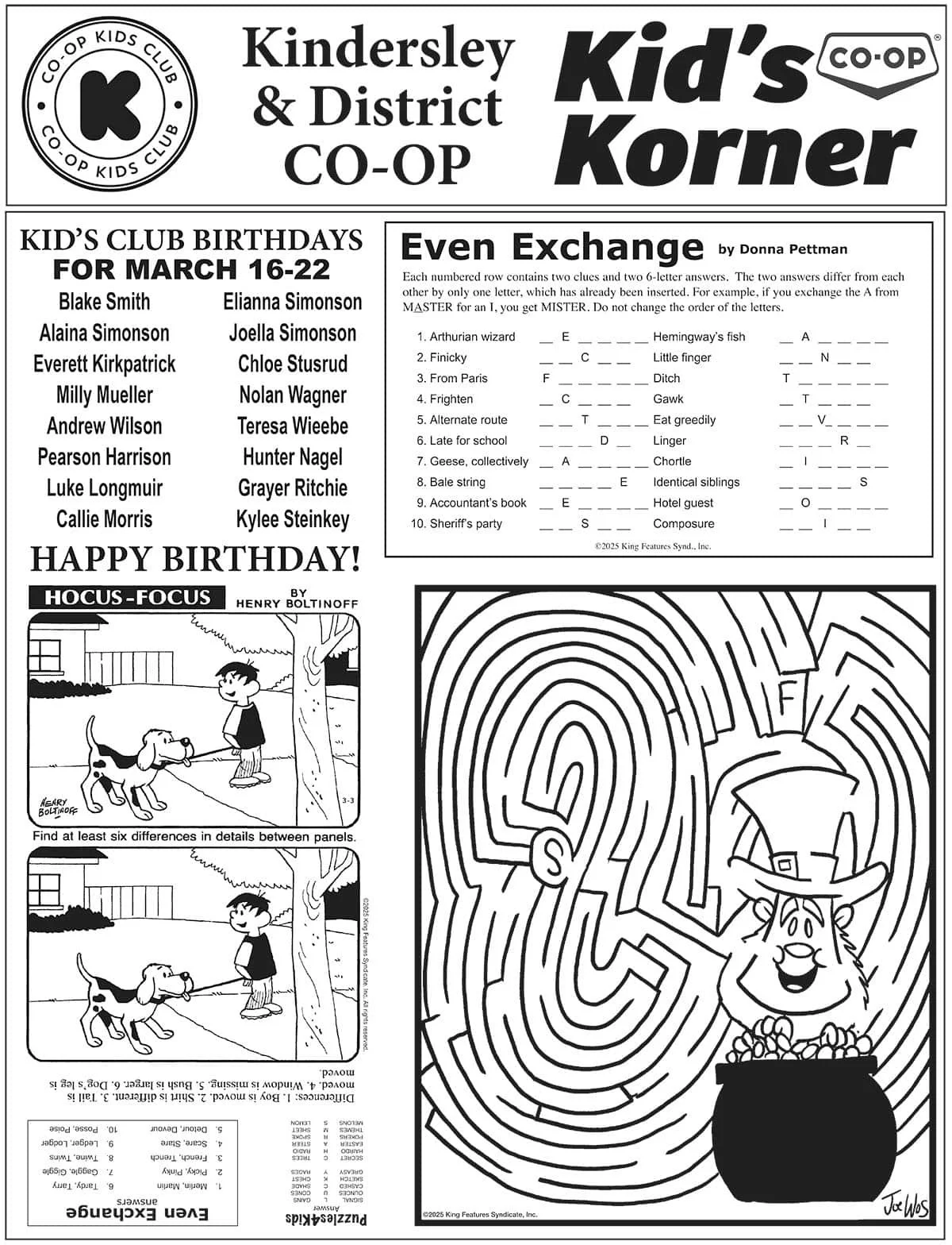 Co-op Kid's Korner, March 13 Fun & Games Mar 13 Written By Your West Central Voice Hey kids, enjoy some puzzles and games! The young at heart can enjoy these too! Your West Central Voice