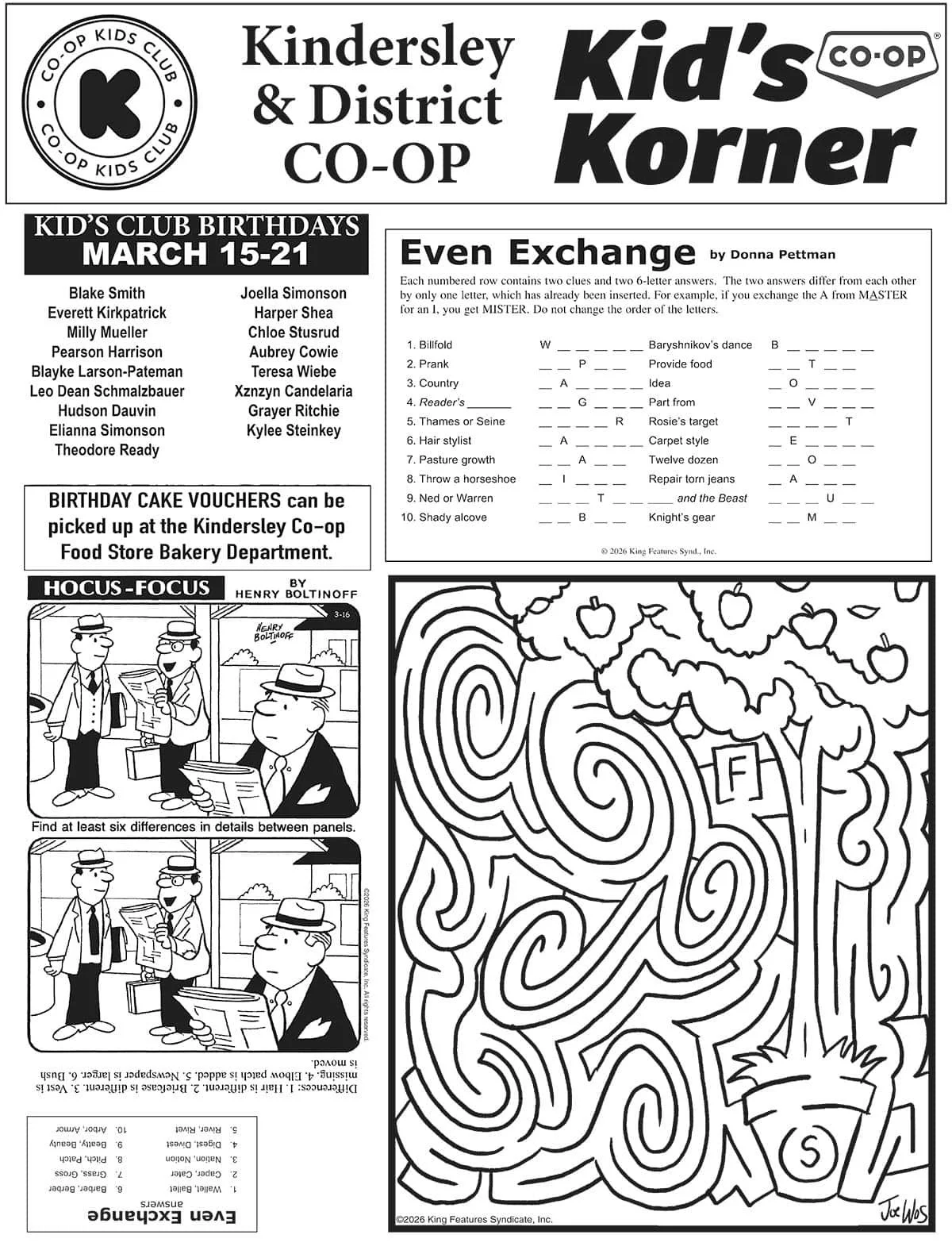 Co-op Kid's Korner, March 19 Fun & Games Mar 19 Written By Your West Central Voice Hey kids, enjoy some puzzles and games! The young at heart can enjoy these too! Your West Central Voice
