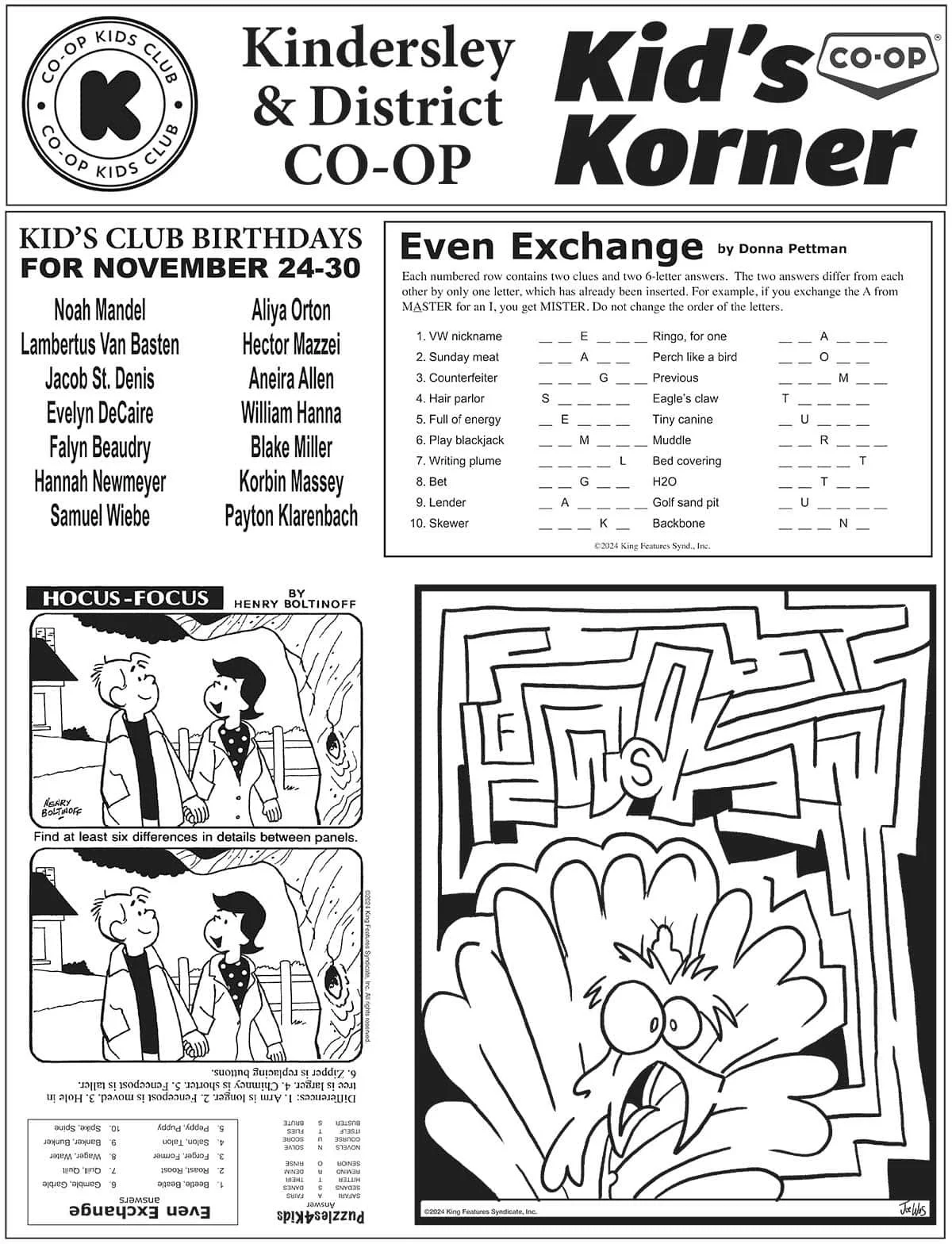 Co-op Kid's Korner, November 21 Fun & Games Nov 21 Written By Your West Central Voice Hey kids, enjoy some puzzles and games! The young at heart can enjoy these too! Your West Central Voice