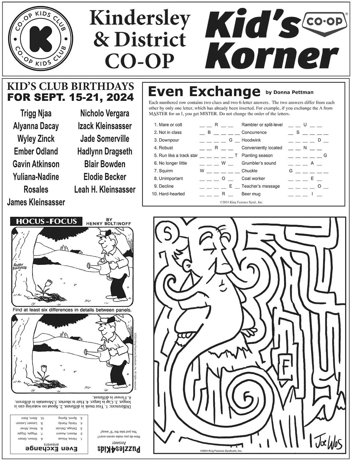 Co-op Kid's Korner, September 19 Fun & Games Sep 19 Written By Your West Central Voice Hey kids, enjoy some puzzles and games! The young at heart can enjoy these too! Your West Central Voice