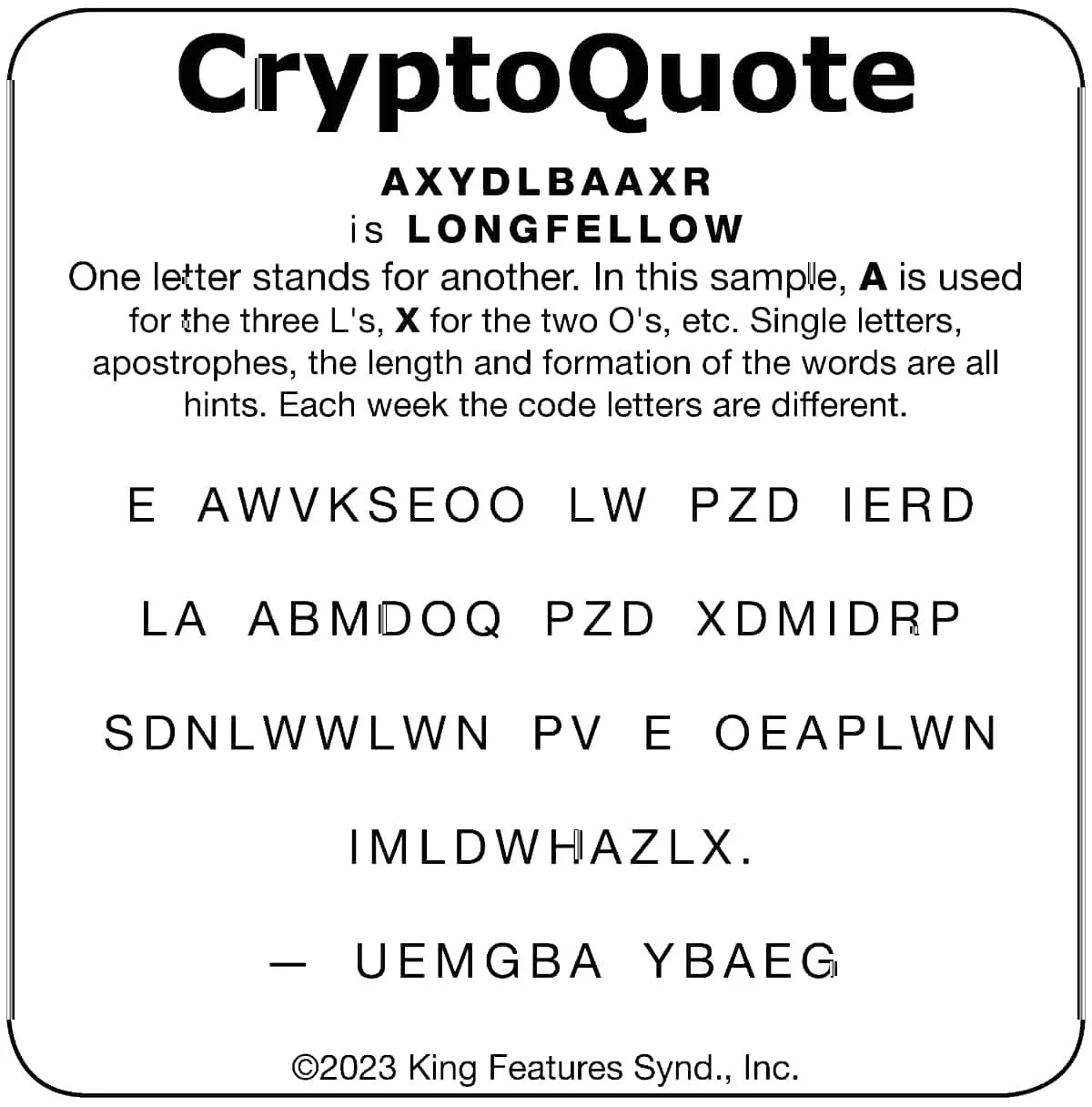 CryptoQuote: Jan 19 Fun & Games Jan 19 Written By The Weekly Bean Have fun breaking the CryptoQuote! Each week the code letters are different. The Weekly Bean