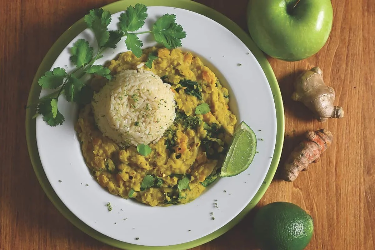 Golden Coconut Dal with Apple, Ginger and Lime