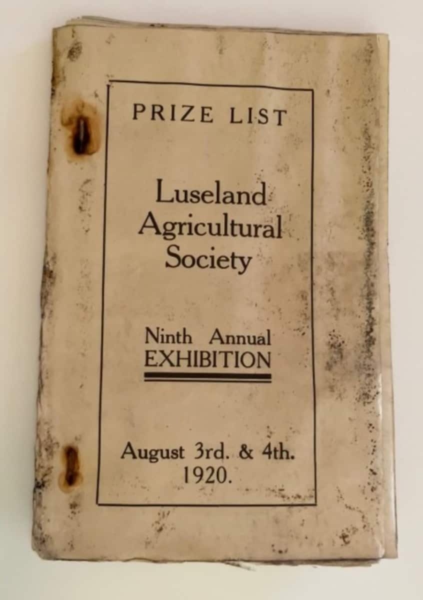 Following this, we began work on the booklets, which were laid on top of the newspapers. One of the booklets was a prize list from the Luseland Agricultural Society’s Ninth Annual Exhibition. What appeared to be a “Chautauqua” program was stuck to the top of the other booklet. This made the paper very fragile, and we decided not to continue attempting to separate them. From the back of the booklet, we were able to see that it was another prize list, this time from Kerrobert’s Agricultural Society. Inside each of the prize list booklets were various advertisements for each of the town’s businesses, as well as the cash prizes for the winners of each event.