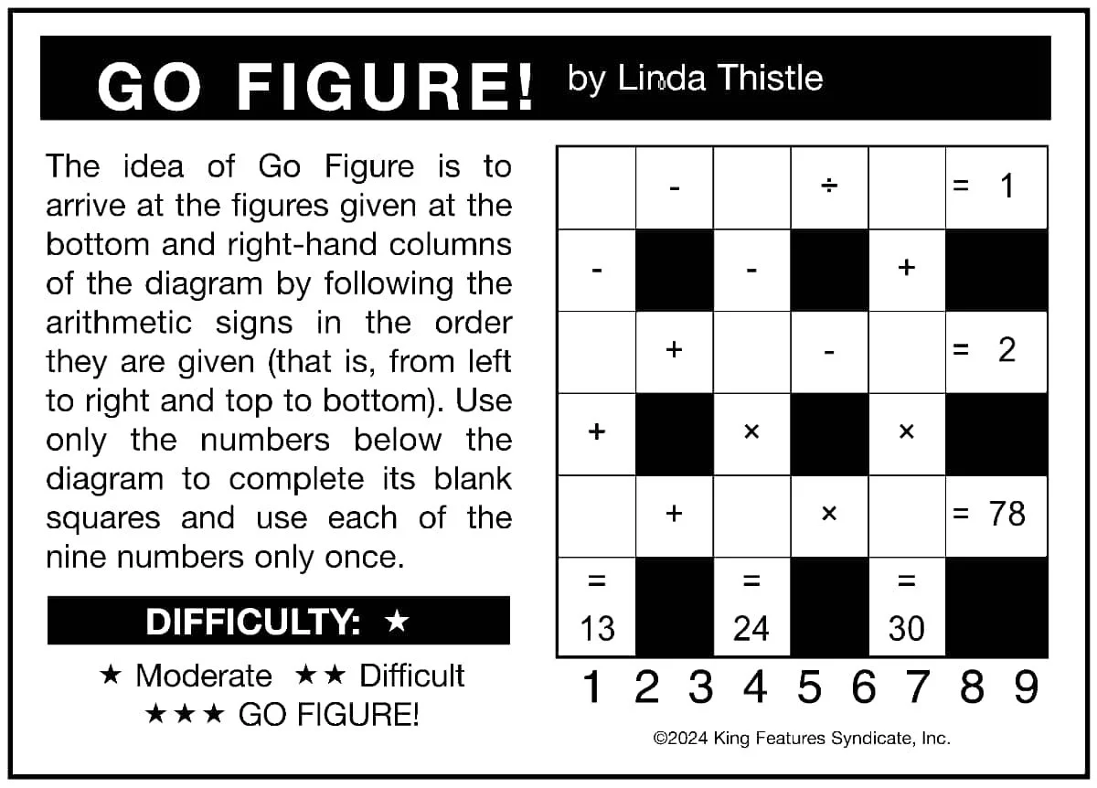 The idea of Go Figure is to arrive at the figures given at the bottom and right-hand columns of the diagram.