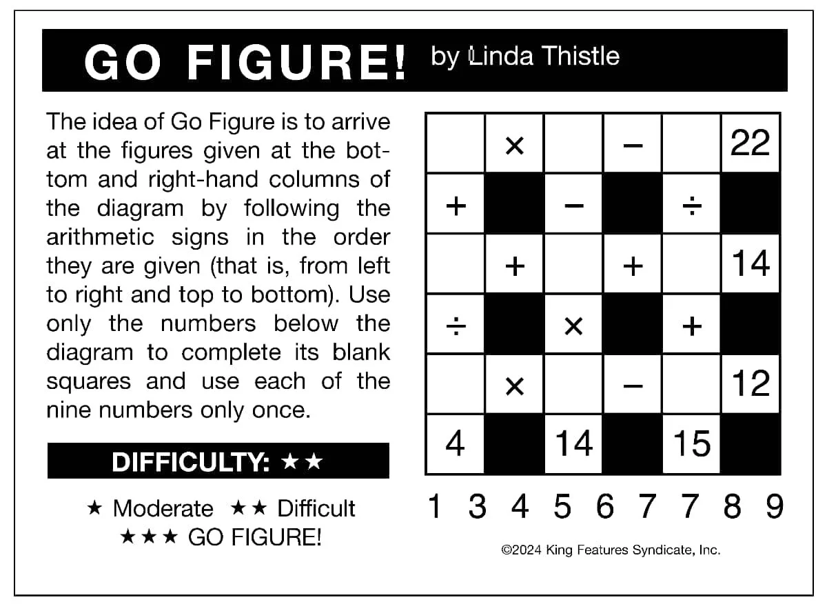 The idea of Go Figure is to arrive at the figures given at the bottom and right-hand columns of the diagram.
