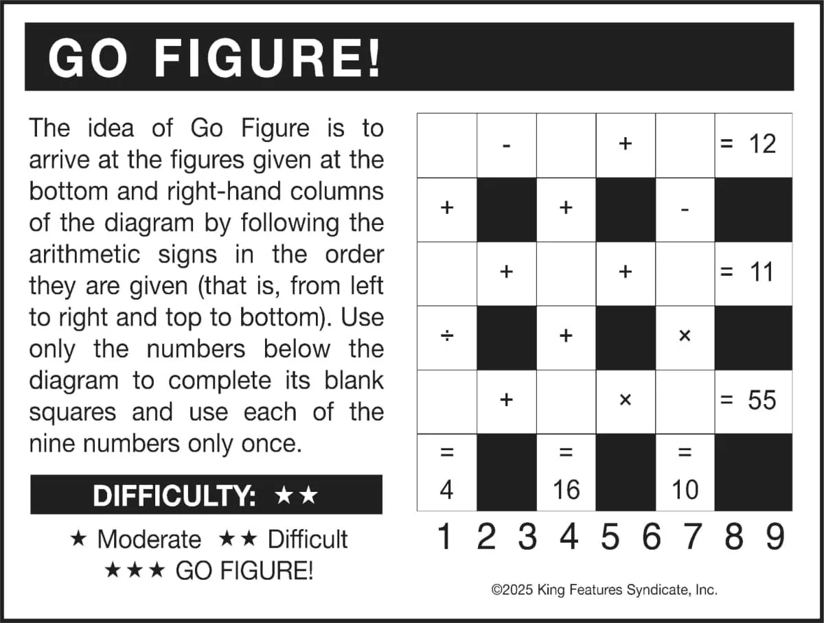 The idea of Go Figure is to arrive at the figures given at the bottom and right-hand columns of the diagram.