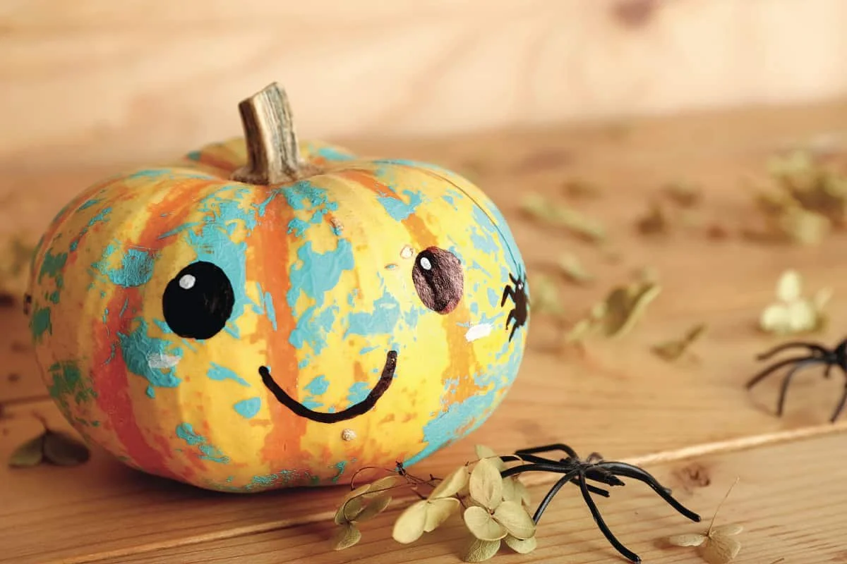 Turn it into a work of art. Grab some non-toxic water-based paint and unleash your creativity. Add abstract shapes and vibrant colours or draw an original face on your pumpkin. Let your imagination run wild!