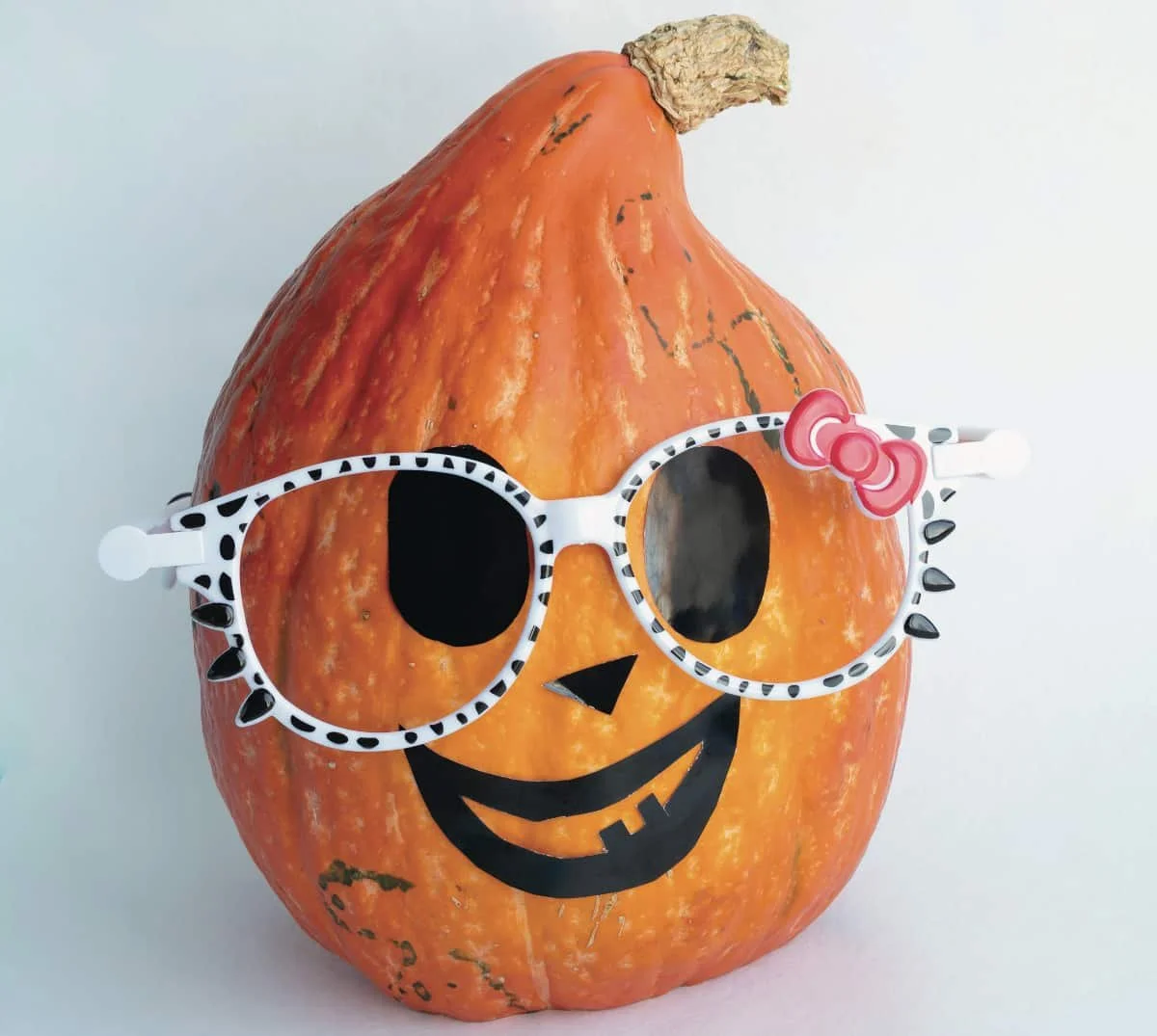 Dress it up. Give your pumpkin a fun costume. Adorn it with a wig, a moustache, glasses, a mask, a cape or a hat. The possibilities are endless.