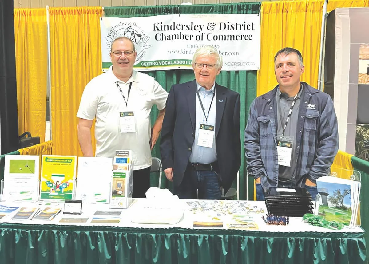 Kevin Martin, Mayor Rod Perkins and Gary Becker were promoting Kindersley and area at the Saskatchewan Oil & Gas Show in Weyburn on June 5th and 6th. Photo by Melissa Martin