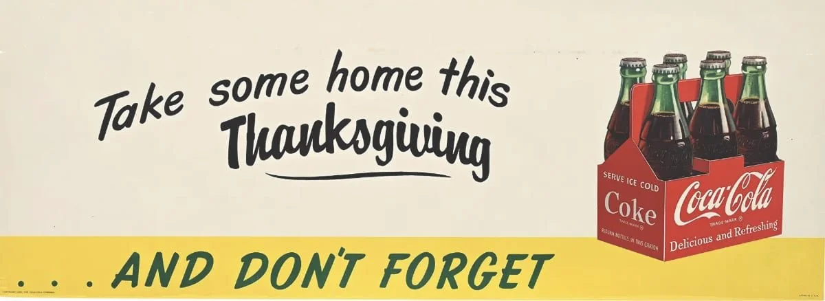 Coca-Cola is a favorite brand among collectors of vintage advertising. Their holiday advertisements are especially beloved; their Christmas ads from the 1930s to 1960s by painter Haddon Sundblom are credited with creating the popular image of Santa Claus. Even if it doesn't make it to every holiday table, Coca-Cola has become an icon of everyday American life.