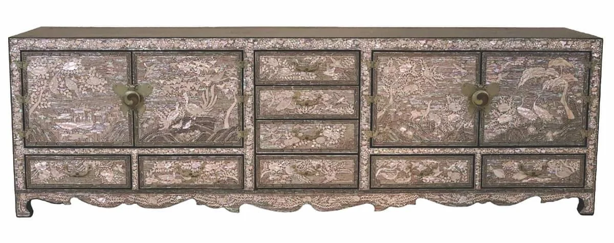 Traditional Korean craft and elaborate mother-of-pearl inlay called Najeonchilgi make this chest fit for an emperor. PHOTO CREDIT: Nye & Company