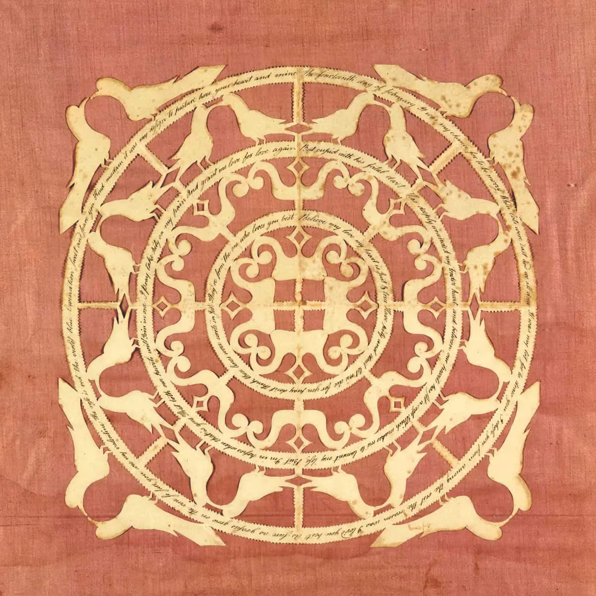 Happy Valentine's Day! This cut-paper valentine was made for February 14 over a century ago. Today, it is valued as a piece of folk art. PHOTO CREDIT: Jeffrey Evans & Associates