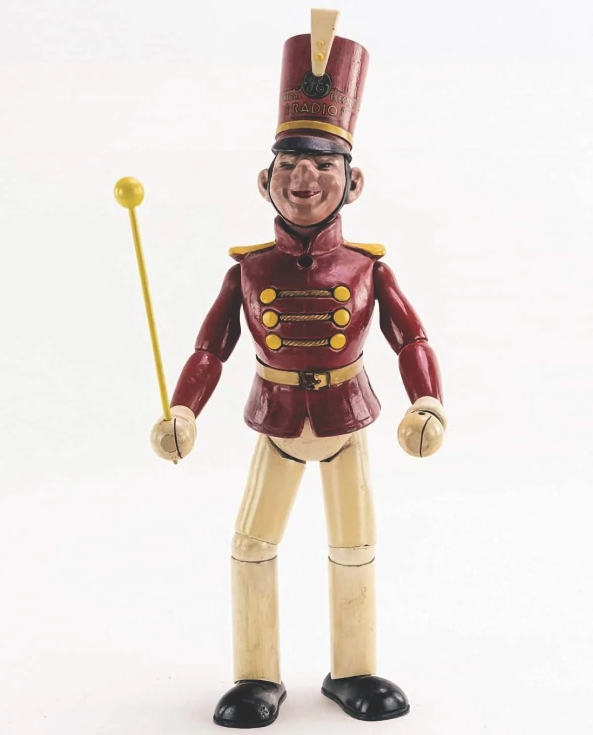 Promotional toys have been a popular form of advertising for a long time. The doll pictured here is Bandy, an advertising mascot created for General Electric in the 1920s. Bandy promoted their radios; his name comes from the "big band" jazz music that was popular at the time, even if his colorful uniform and tall hat might be a better fit for leading a marching band.