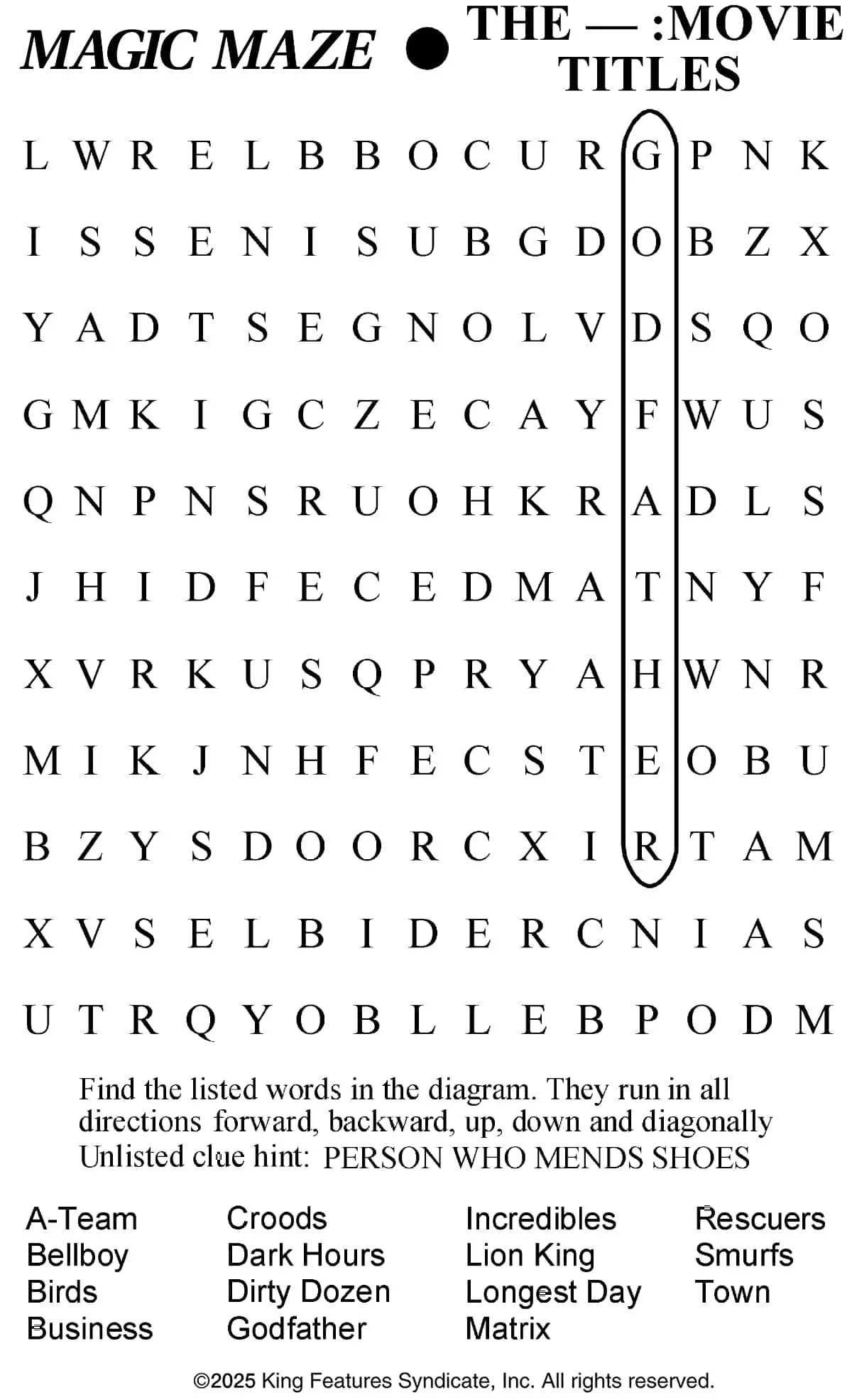 Find the listed words in the diagram. They run in all directions forward, backward, up, down and diagonally.
