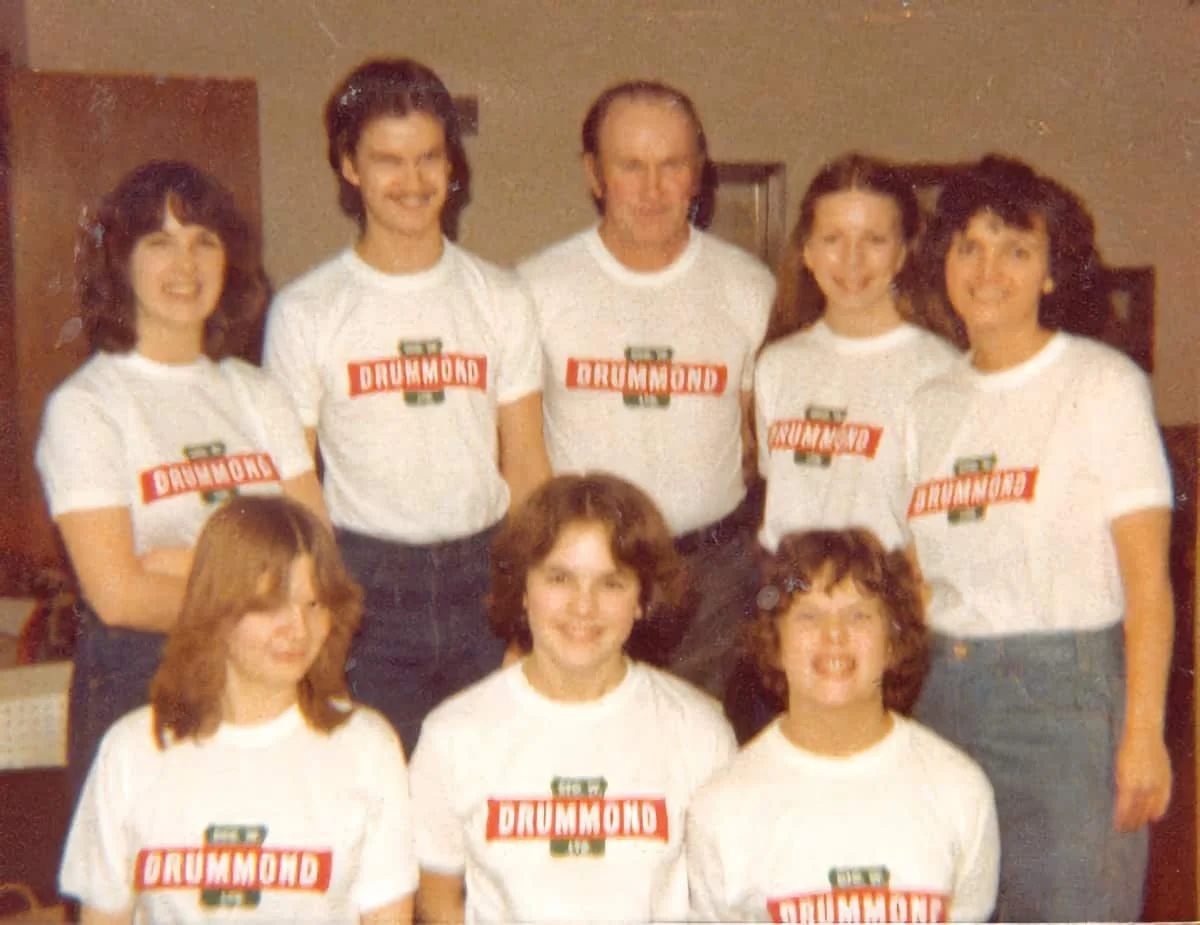 The Drummond Clan (circa 1978): Back Row (L-R) Pam, Garth, George, Kristine, Bev. Front Row (L-R) Valarie, Carrie, Kate