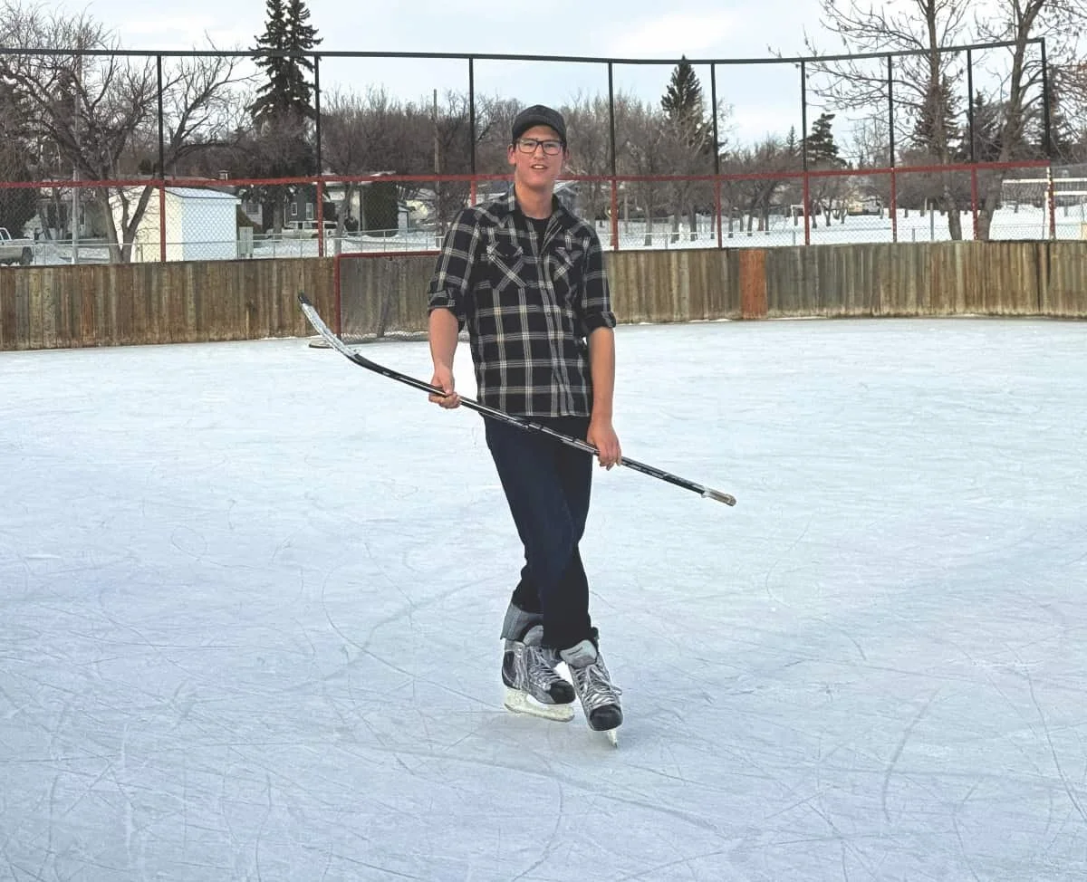 Yes it’s January in Kindersley, but you would never know it by looking at this young man who was shooting pucks at one of the outdoor rinks on Monday afternoon.