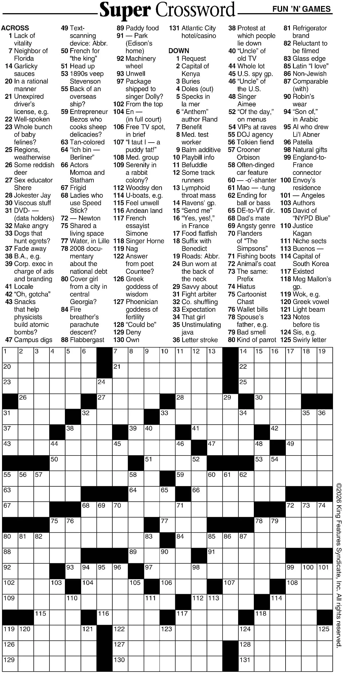 Super Crossword: Fun 'N' Games Fun & Games Mar 5 Written By Your West Central Voice Give your brain a workout with our super crossword! Answers below: Don’t cheat! :) Your West Central Voice