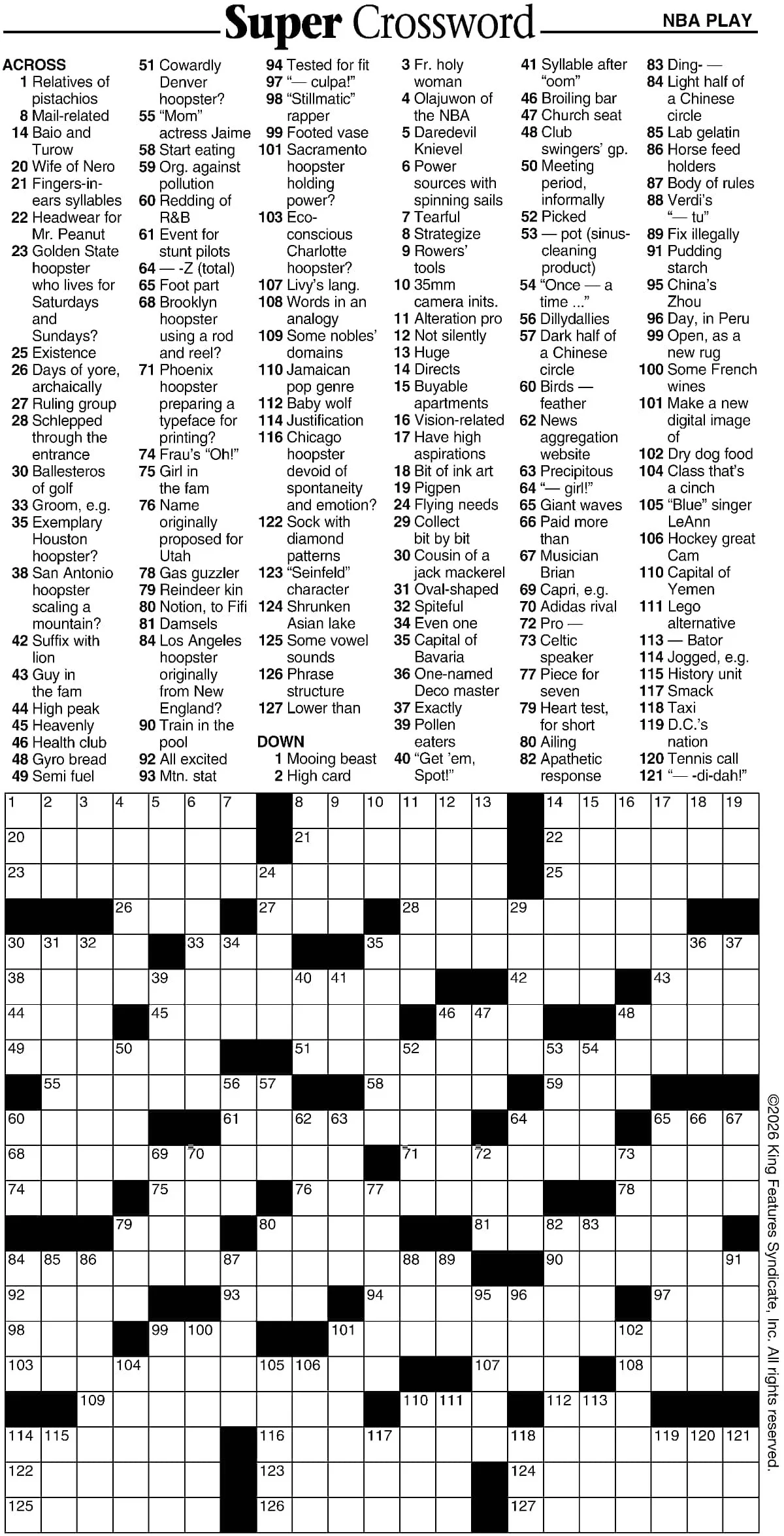 Super Crossword: NBA Play Fun & Games Feb 12 Written By Your West Central Voice Give your brain a workout with our super crossword! Answers below: Don’t cheat! :) Your West Central Voice