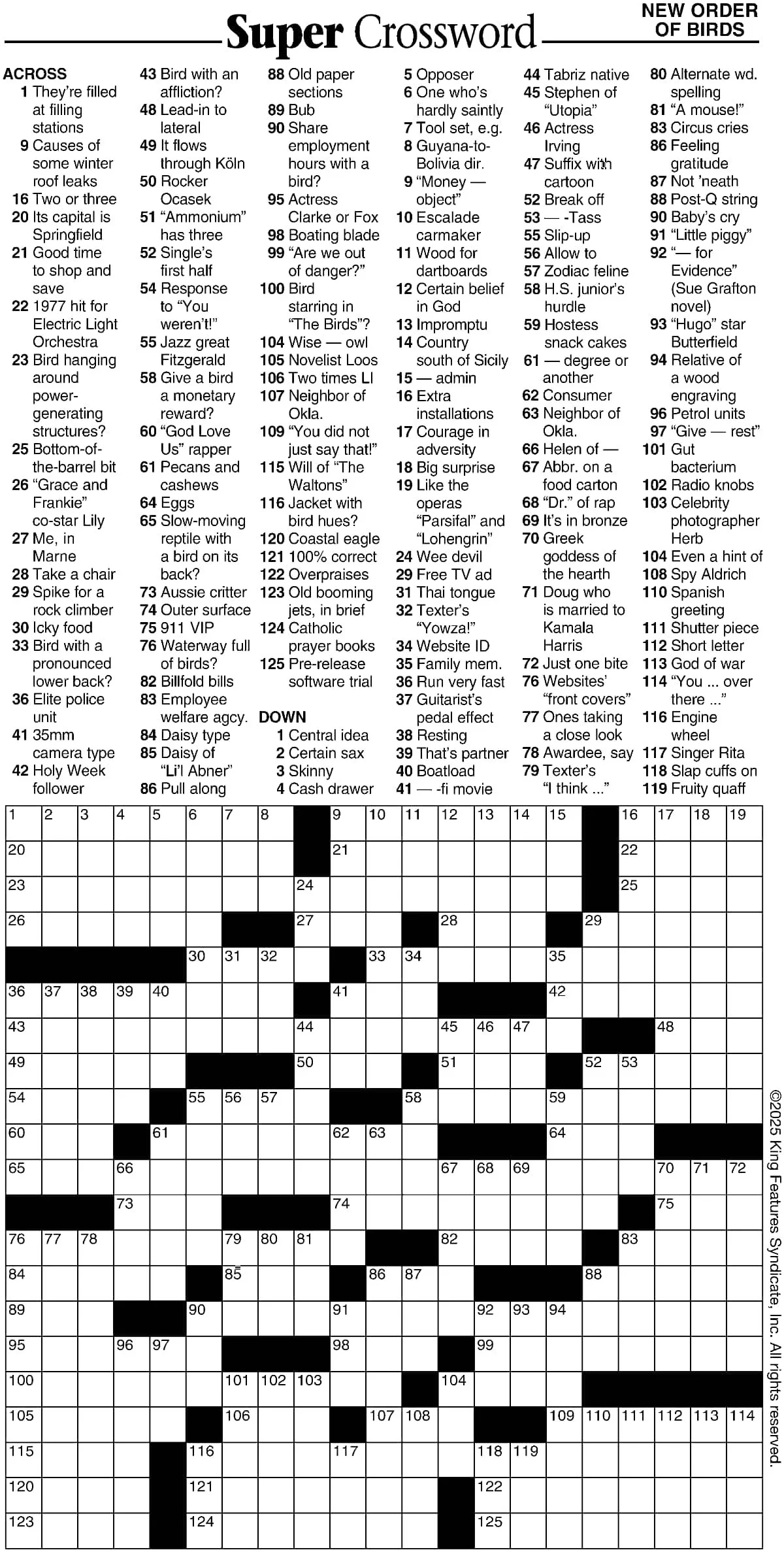 Super Crossword: New Order of Birds Fun & Games Jul 3 Written By Your West Central Voice Give your brain a workout with our super crossword! Answers below: Don’t cheat! :) Your West Central Voice