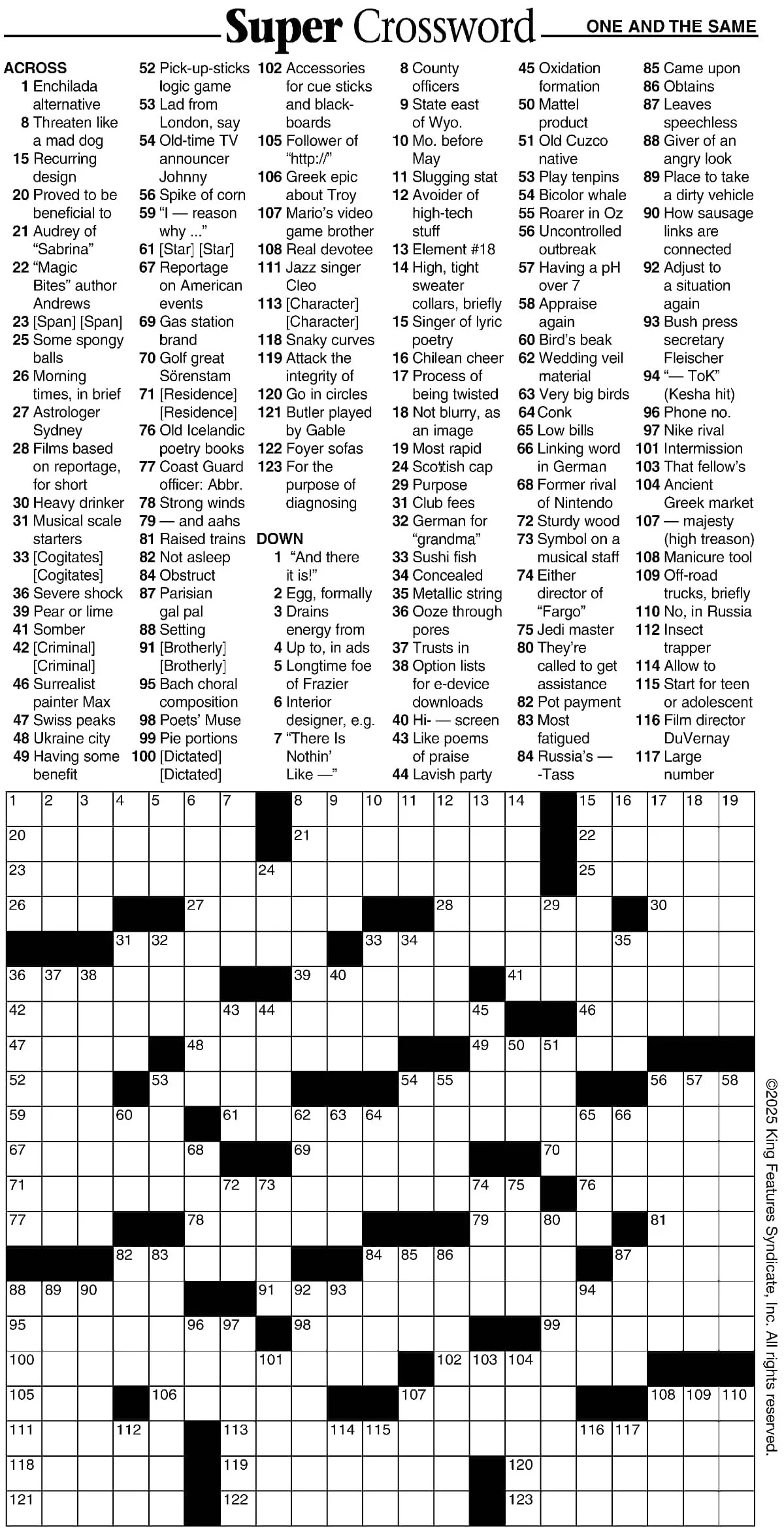 Super Crossword: One And The Same Fun & Games Nov 27 Written By Your West Central Voice Give your brain a workout with our super crossword! Answers below: Don’t cheat! :) Your West Central Voice