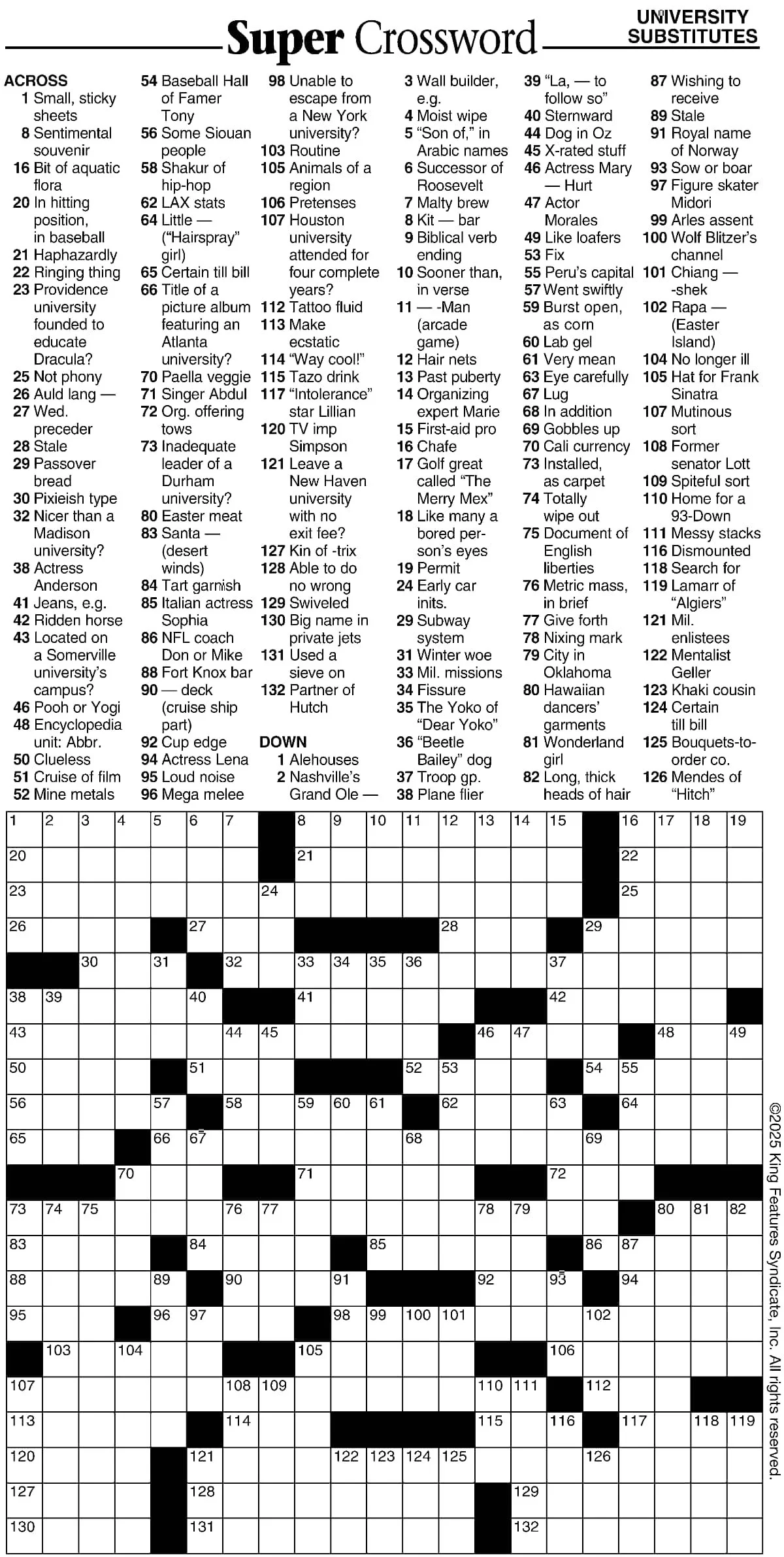 Super Crossword: University Substitutes Fun & Games Dec 18 Written By Your West Central Voice Give your brain a workout with our super crossword! Answers below: Don’t cheat! :) Your West Central Voice